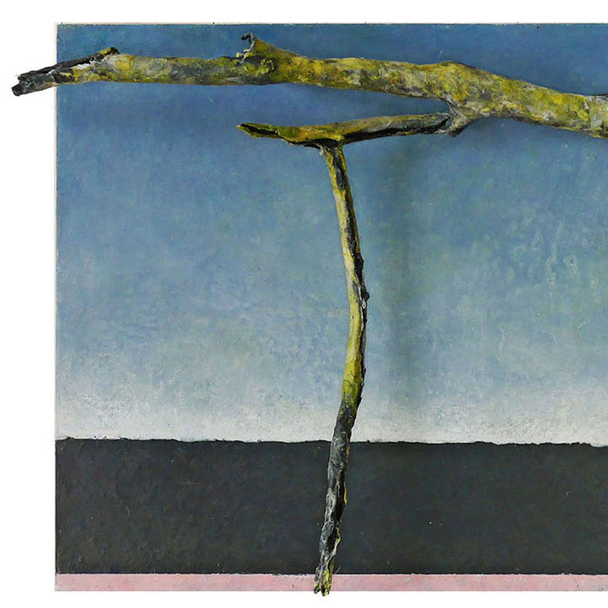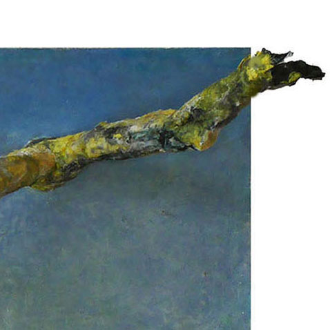 Über eine spezielle Abguss-Technik mit Papier manifestiere ich Oberflächen und Strukturen realer Objekte. Bei der Arbeit „Gelber Ast“ transformiere ich ein banales Baumfragment, das ich im Wald gefunden habe und lade es mit neuer Bedeutung auf.